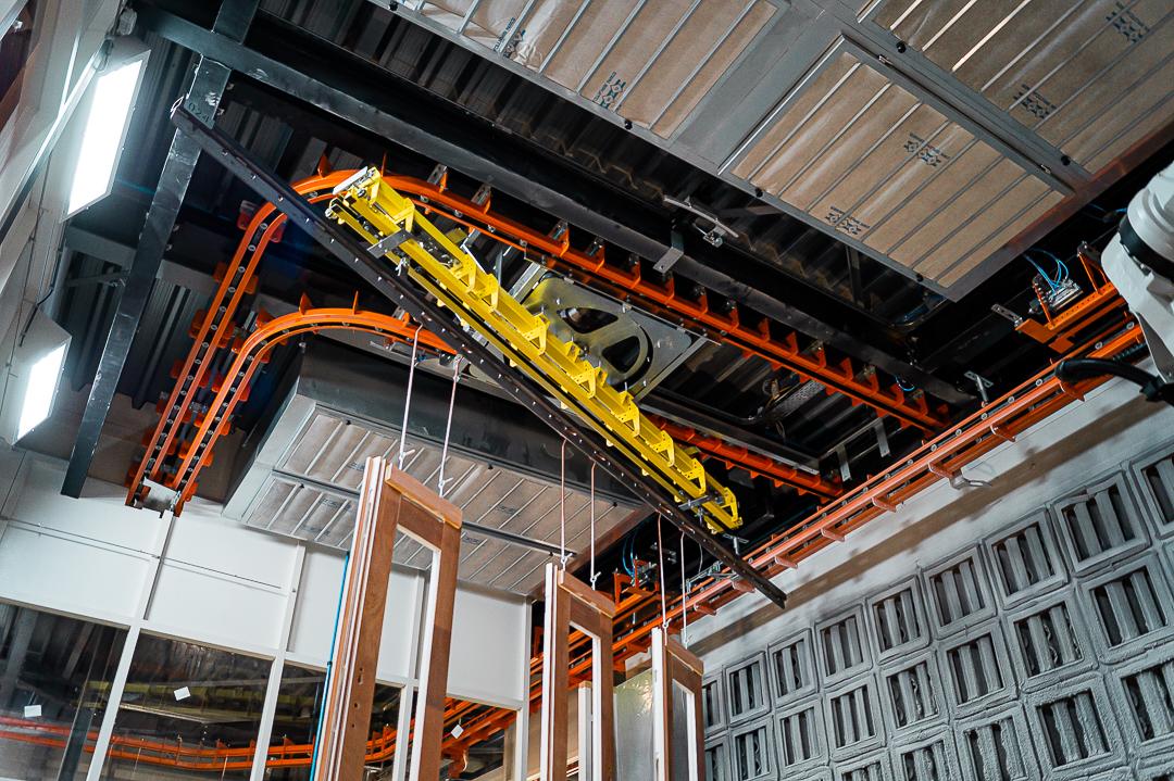 This installation is popular in the timber industry, where the painting of window frames, doors, and other components needs to be done in a precise, consistent, and efficient manner. It can be made for any type of overhead conveyor, including Power & Free and Monorail conveyors.